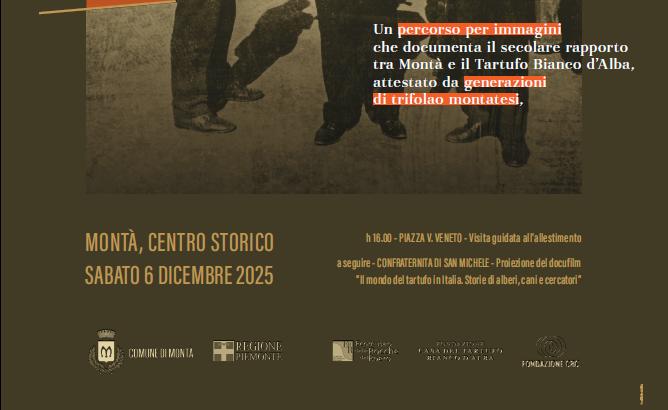Si parte con le grandi fotografie dei più importanti e riconosciuti trifolao della seconda metà del ‘900 ̶ figure che segnano ancora oggi storia e tradizioni della comunità - ̶ per proseguire documentando le famiglie di cercatori da almeno tre generazioni, per poi soffermarsi sulle più svariate, e anche curiose, attestazioni documentali sul nesso indissolubile che lega il paese al Bianco d’Alba. Dai riferimenti del Casalis nel suo celebre Dizionario sulle caratteristiche più significative dei borghi dello Stato Sabaudo, alle poesie del poeta locale Carlo Cocito, agli studi effettuati nelle rocche dal CNR negli anni ’80 e ’90 del secolo scorso. E ancora, le prime insegne di rivendita di tartufi, i tanti premi puntualmente vinti alla Fiera di Alba, le molteplici iniziative di promozione che hanno visto trifolao montatesi protagonisti: dalla partecipazione alla trasmissione cult della RAI, Portobello, alle “cerche” organizzate negli States e alla Casa Bianca per i Presidenti USA, come Bill Clinton, alle manifestazioni locali. Un racconto a tutto tondo, che non risparmia l’accenno agli screzi e ai rancori tra trifolao in merito ai posti dove trovare i tartufi (rò) ai deterrenti, anche drastici, utilizzati dai proprietari dei boschi per impedire la cerca. Un racconto per immagini che svela un universo culturale complesso, dove i riferimenti al tartufo compaiono addirittura negli epitaffi.